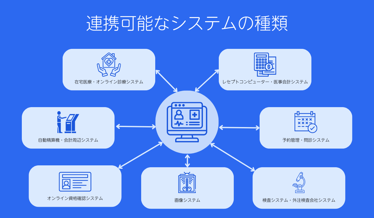 クリニックにおいて、電子カルテと連携することが多い代表的なシステムをご紹介します。