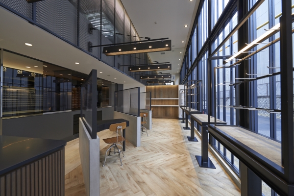 そして、地域の特徴として60代の団塊世代と30代の団塊ジュニア、2つの年齢層の方をメインの対象と捉えています。中でも30代の方はとても家族を大切にする傾向が強かったり、オーガニックなものへの関心が高かったりするのではないかと思います。ですから店舗作りの素材にもアルミは用いず、スチールと木を組み合わせた設計としました。そして、黒もただの黒ではなくマット系でしっとりと落ち着く墨色にしています。床材もタイルなどではなく、落ち着いた色の絨毯やフローリングを配したものになっています。ですから、歩く音も小さく静かな空間を生み出すことに成功しました。